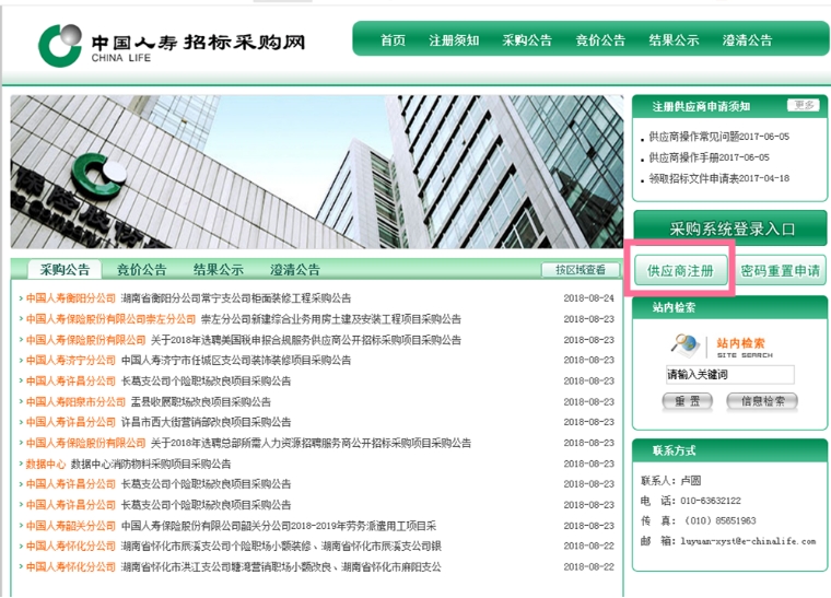 特別提示:凡具備資格且對(duì)本項(xiàng)目感興趣的投標(biāo)人,請(qǐng)務(wù)必在招標(biāo)文件獲取截止時(shí)間前在“中國(guó)人壽招標(biāo)采購(gòu)網(wǎng)”(網(wǎng)址:http://cpmsx.e-chinalife.com/xycms/)的“供應(yīng)商注冊(cè)”處進(jìn)行免費(fèi)注冊(cè)。注冊(cè)時(shí),“歸屬單位”及“該項(xiàng)目所屬單位”均要選擇“中國(guó)人壽湖北省分公司”。